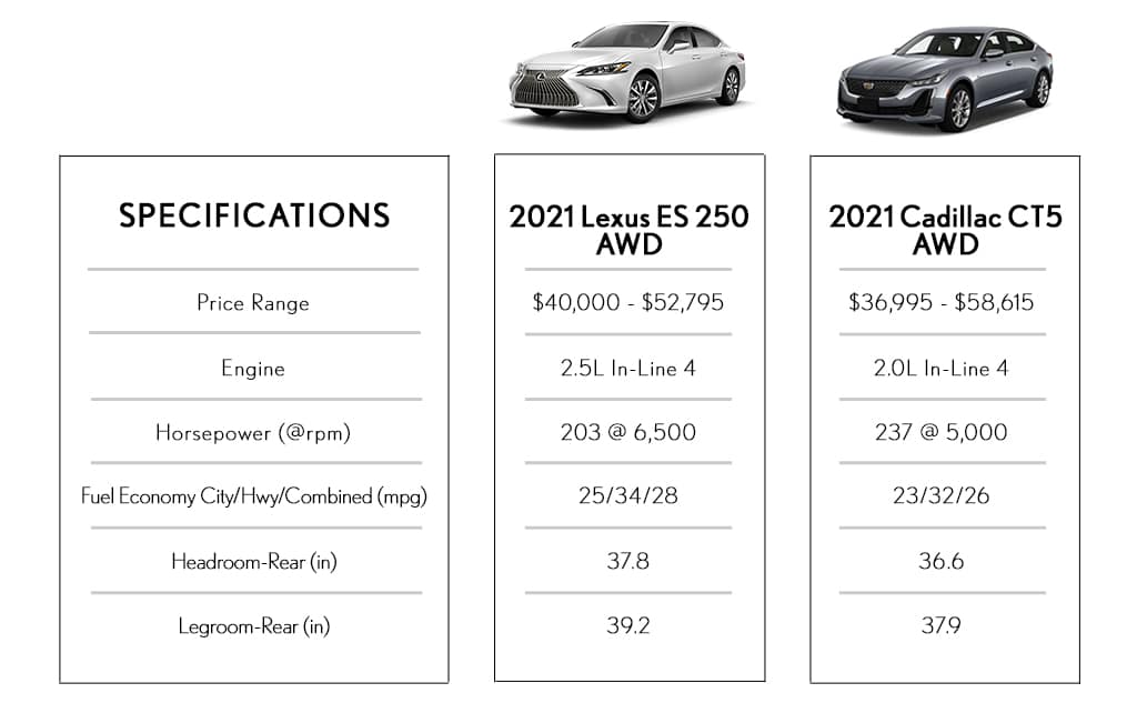 Lexus allows much more flexibility when guests want to add options and packages. For instance, should a guest purchasing a Lexus ES want a Surround View Camera, they would only need to add one option. With Cadillac, to add the same option a guest would have to select the Parking Package ($2,090) but that requires also purchasing the Premium Luxury trim ($4,290), Lighting Package ($600), Driver Awareness Plus Package ($1,300) and Navigation and Bose Premium Audio Package ($1,350). This makes adding a simple feature a potentially expensive decision.